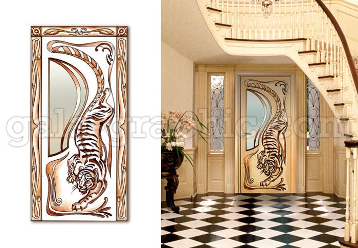 | Эскиз резьбы по дереву для межкомнатной / входной двери "Тигр", 2009г. |