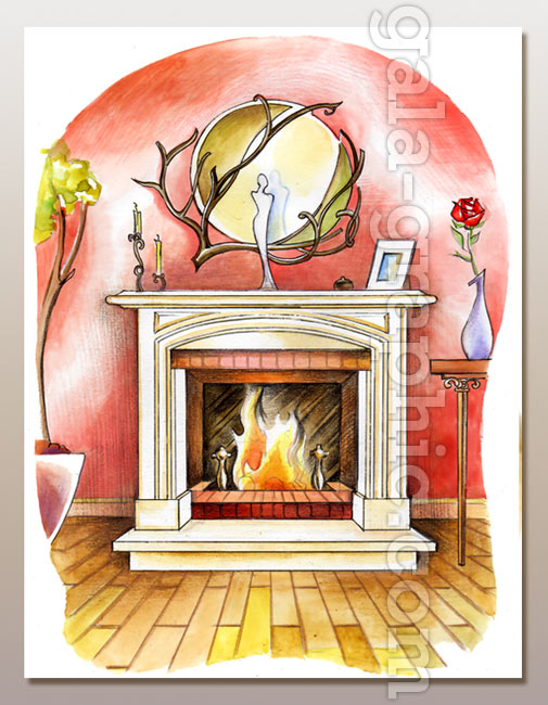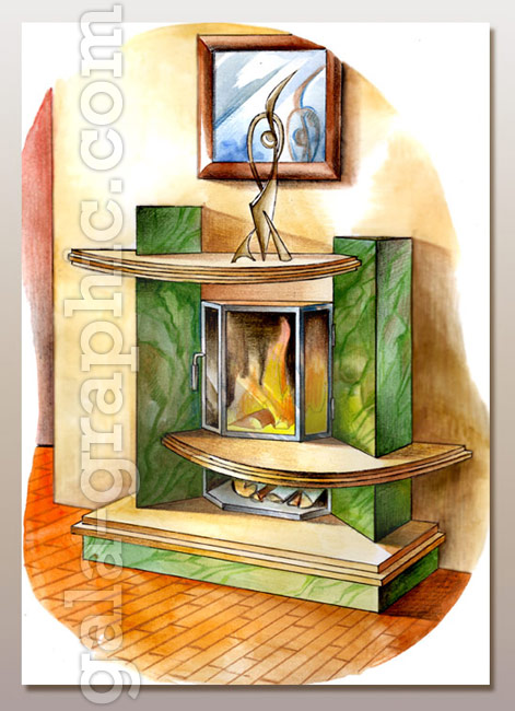 | Эскиз камина и зеркальной рамы. Мрамор, ковка, 2007г. |