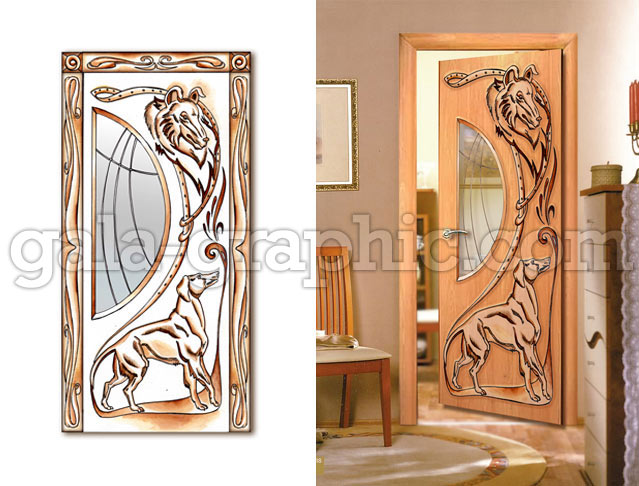 | Эскиз резьбы по дереву для межкомнатной / входной двери "Собачки", 2009г. |