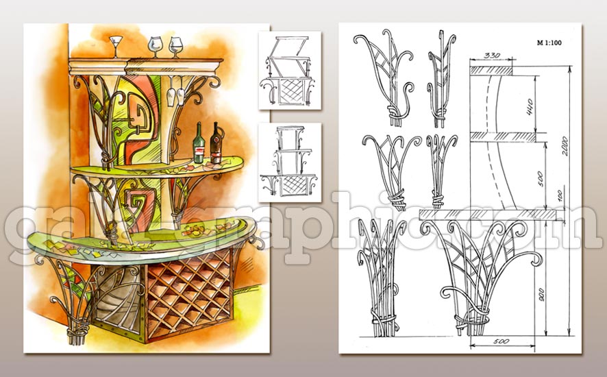 | Эскиз полки-бара для винного погребка, 2008г. |
