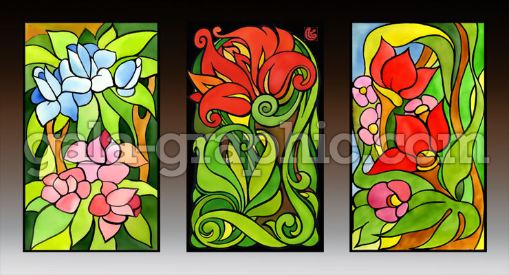 | Эскизы витражных панно для ресторана (г. Подольск), 2006г. |