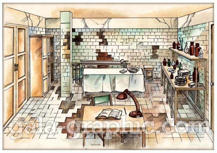 " Анатомическая" (сериал "Ликвидация"), 2006г. Бумага, акварель, карандаш. |