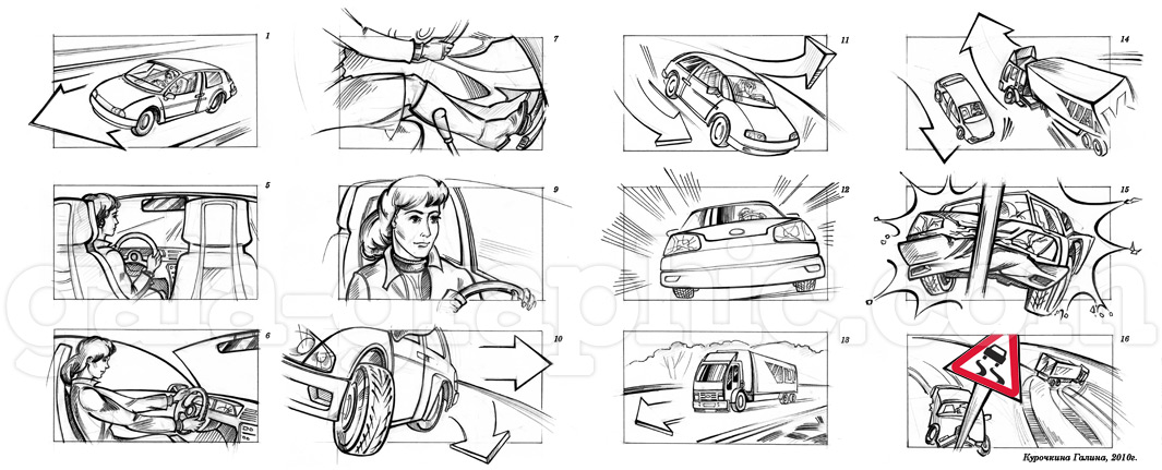 | Раскадровка эпизода "ДТП", 2010г. |