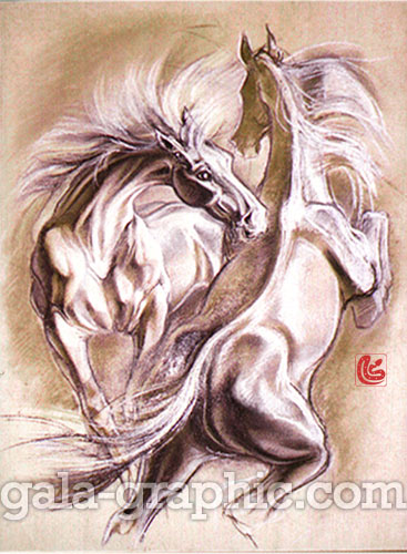 | "Лошадки", 39х60см, 1995г. бумага, пастель |